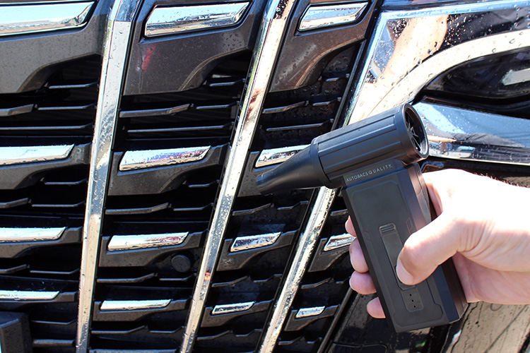 グリル/サイドミラー/ヘッドライト/ドアハンドル/ワイパーまわりなど、クロスでは届きにくい細かいパーツや隙間に残った水滴を強力な風で効率よく吹き飛ばします。ウォータースポットの防止にも効果的で仕上げ作業がよりスムーズになります。